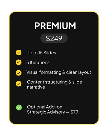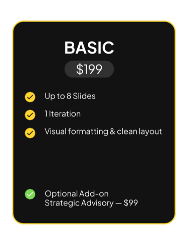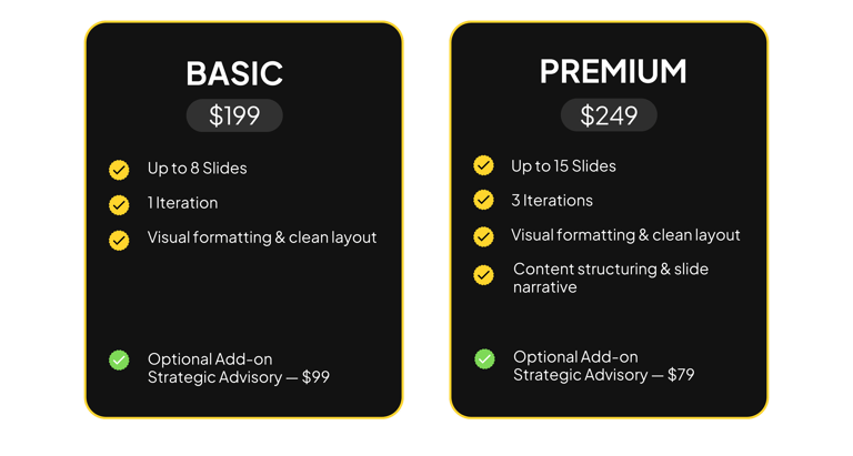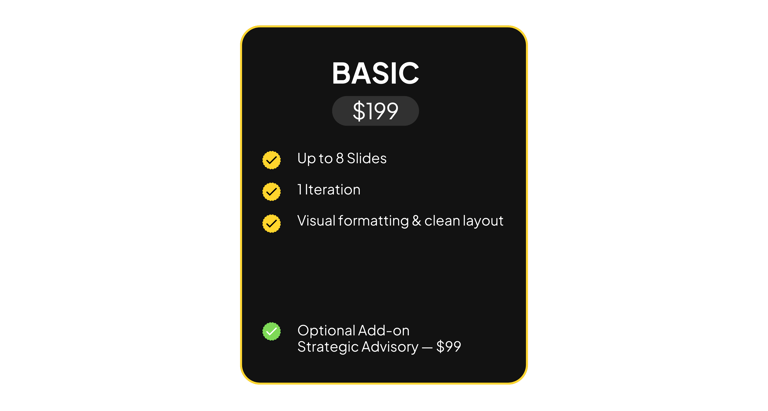 Pitch Decks & Advisory. Built by founders, for founders.